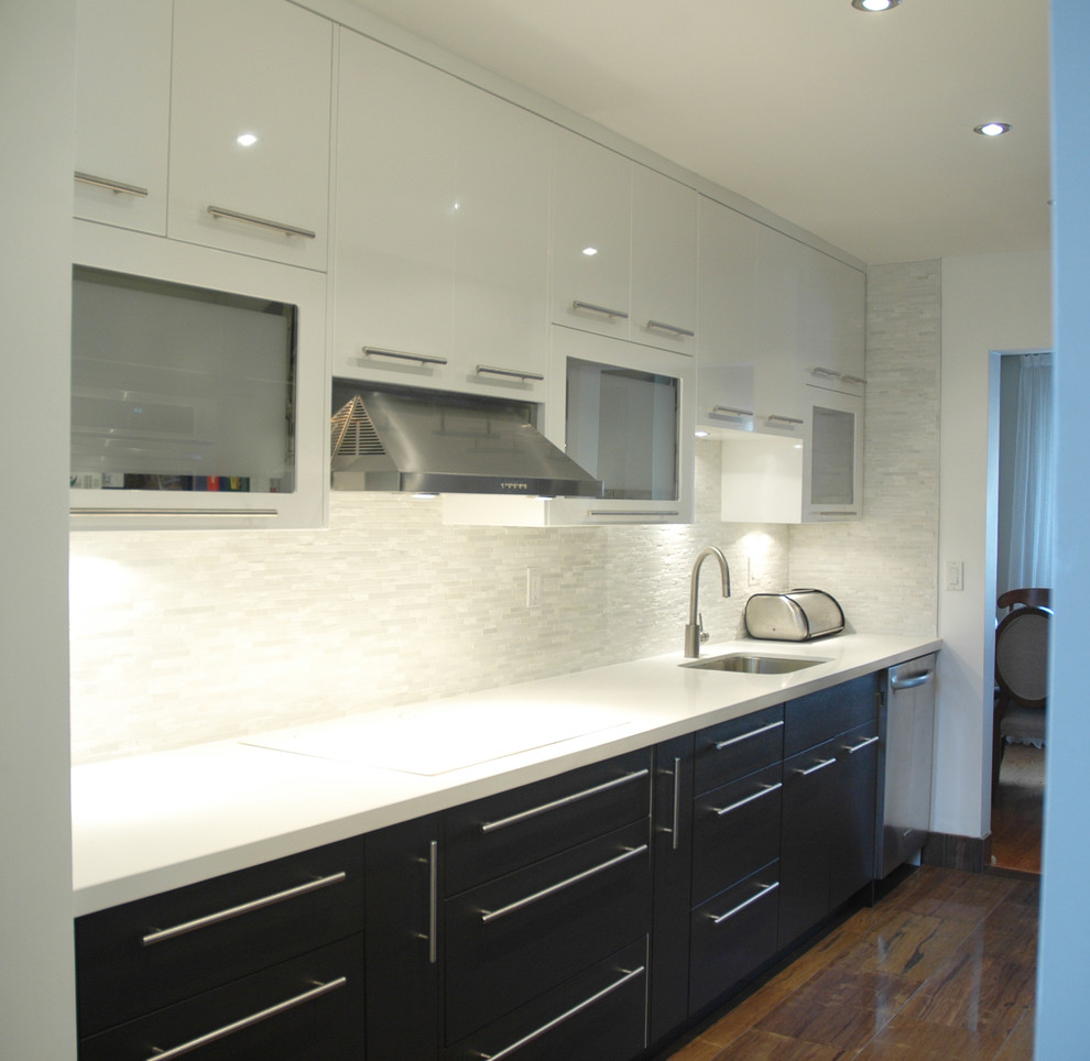 "There will be a tendency to include intense color accents in 2020 kitchen designs. Rather than to choose just one color for the kitchen cabinets, the trend in 2020 is to choose one or several elements, like the kitchen island, kitchen wall cabinets, or base cabinets in daring colors, like dark red, bright yellow, green, or navy blue.In 2020, there is no limitation in terms of which color to ... Chairs with high-gloss green plastic backs complement this space's sleek look and are easy to clean making them ideal for children. A porcelain mosaic tiled wall breaks up the