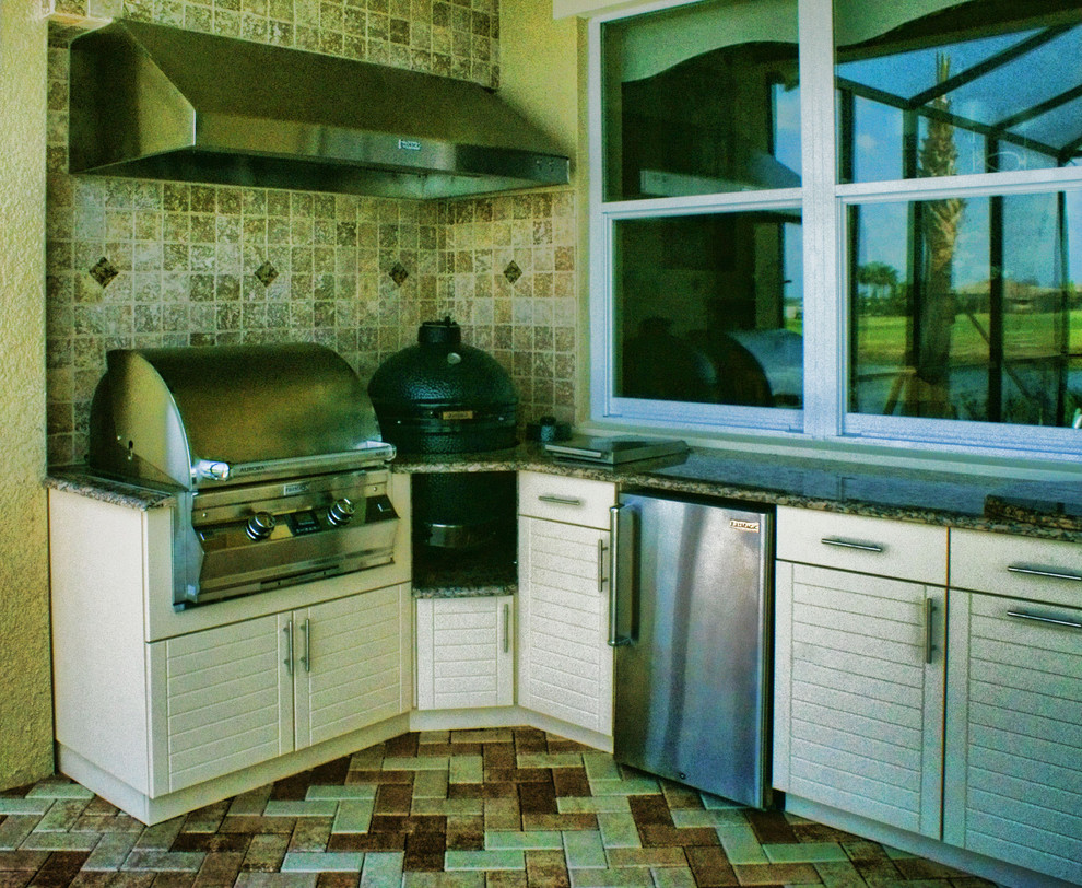 Browse 90 Outdoor Kitchen With Green Egg on Houzz Whether you want inspiration for planning outdoor kitchen with green egg or are building designer outdoor kitchen with green egg from scratch, Houzz has 90 pictures from the best designers, decorators, and architects in the country, including M & D Roofing & Renovations and Ferguson Bath, Kitchen & Lighting Gallery. The outdoor kitchen design selects the big green egg beside the stove that lies next to the sink unit. The two cooking appliances share a similar size, unlike the first tip. We can thus conclude the outdoor kitchen deploys complete cooking